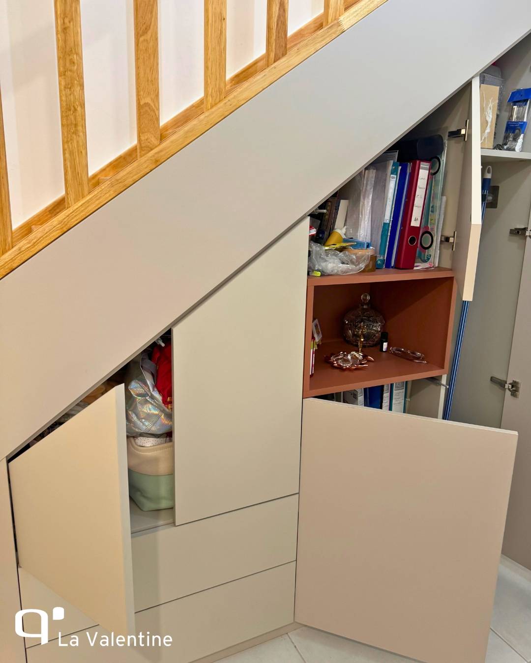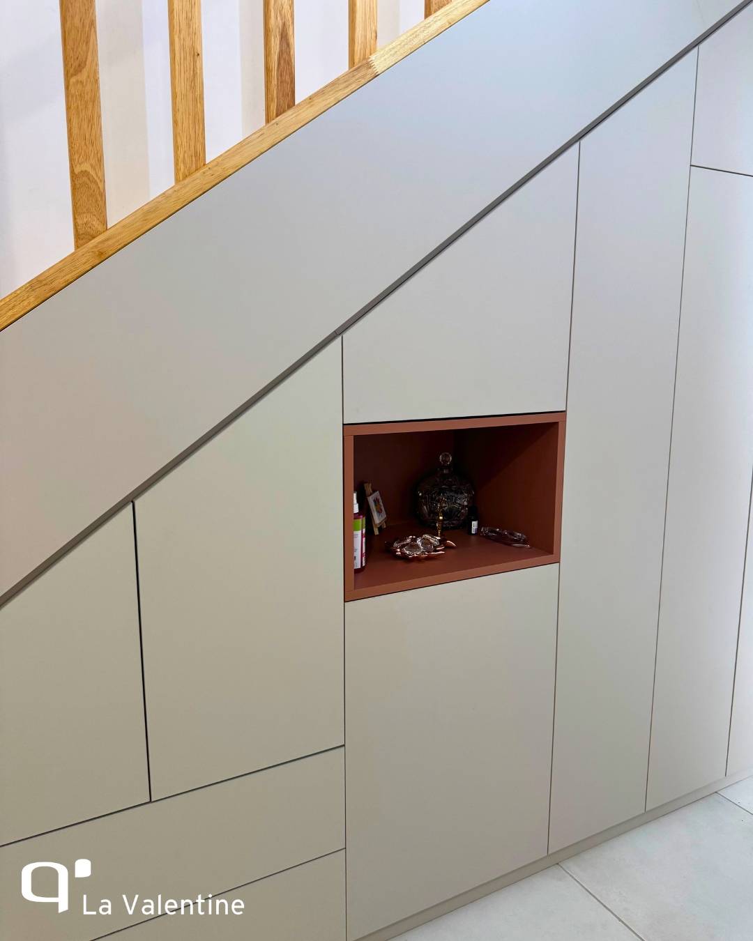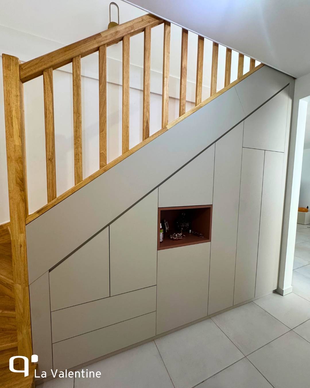 Chez Quadro La Valentine, nous croyons que chaque espace a du potentiel, même les plus atypiques. Cette réalisation illustre parfaitement notre approche : transformer l’espace sous escalier en un aménagement à la fois fonctionnel et esthétique.
