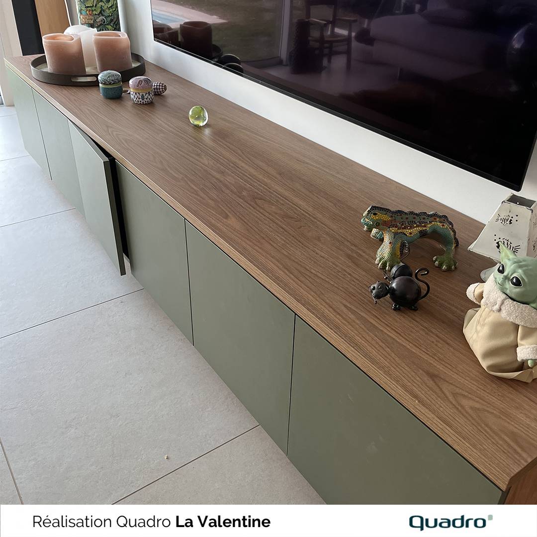M. et Mme G. nous ont de nouveau fait confiance pour la réalisation d’un meuble TV sur mesure, après avoir déjà sollicité Quadro La Valentine pour leur placard pan de mur, présenté récemment. Leur souhait était clair : obtenir un meuble alliant esthétique, praticité et cohérence avec le style de leur intérieur.