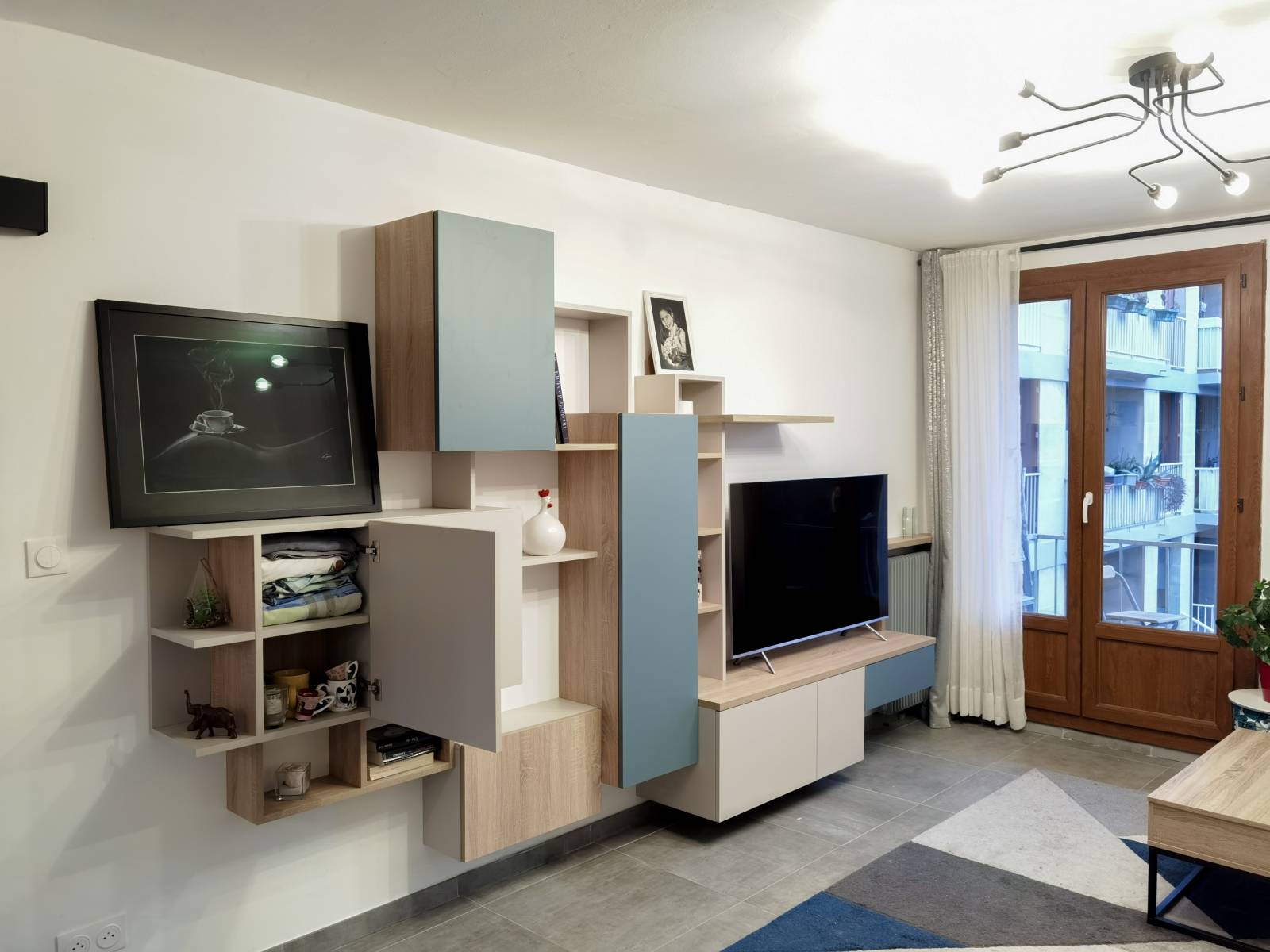 Nos clients à Aix en Provence et alentours nous font confiance pour notre expertise et notre créativité. Chaque meuble TV sur mesure que nous créons est unique, reflet de vos préférences et de votre style de vie. Que vous souhaitiez un meuble design et central, suspendu avec étagères, ou en angle, nous avons la solution pour vous.