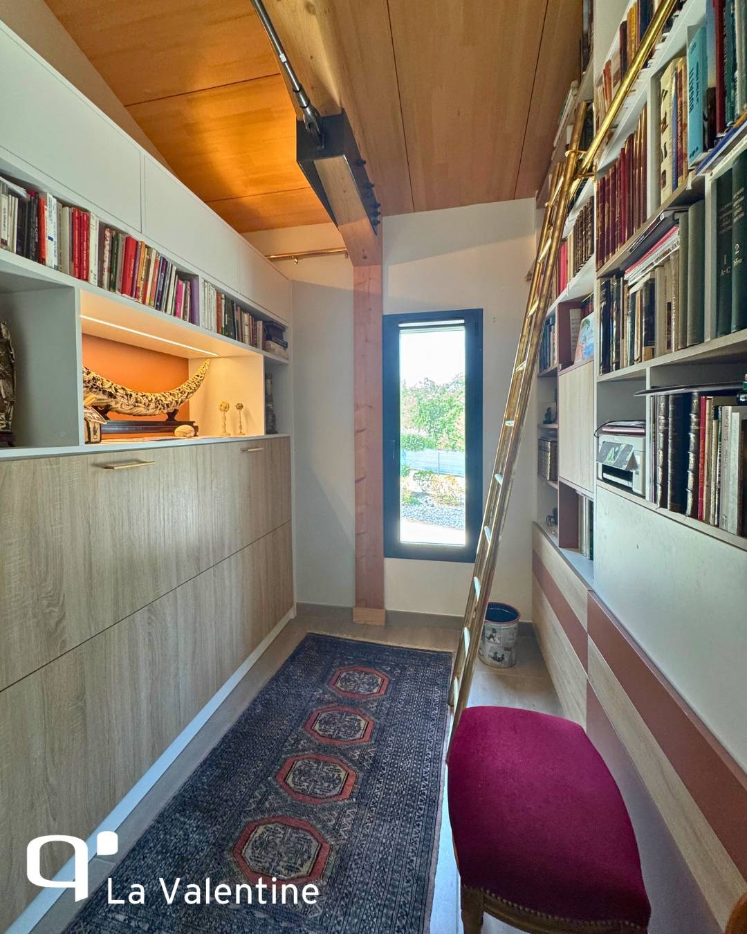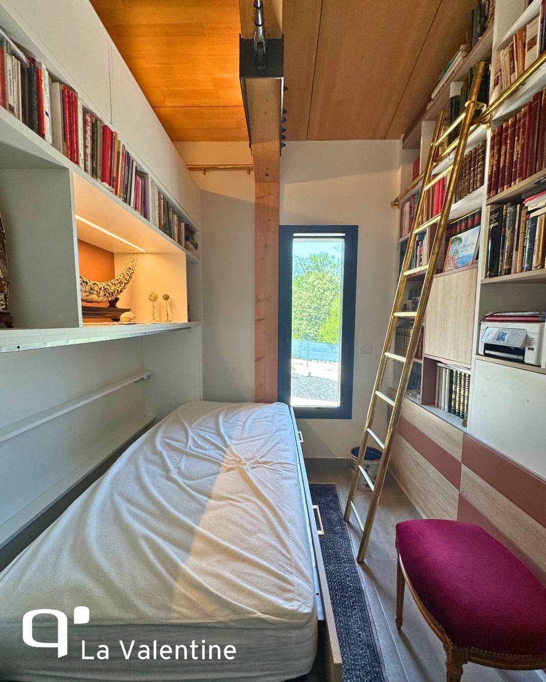 Une bibliothèque pleine à craquer… et pourtant, il reste encore de la place pour un lit ! C’est le genre de défi que nous adorons relever chez Quadro La Valentine : transformer des espaces restreints en lieux à la fois fonctionnels, confortables et esthétiques.