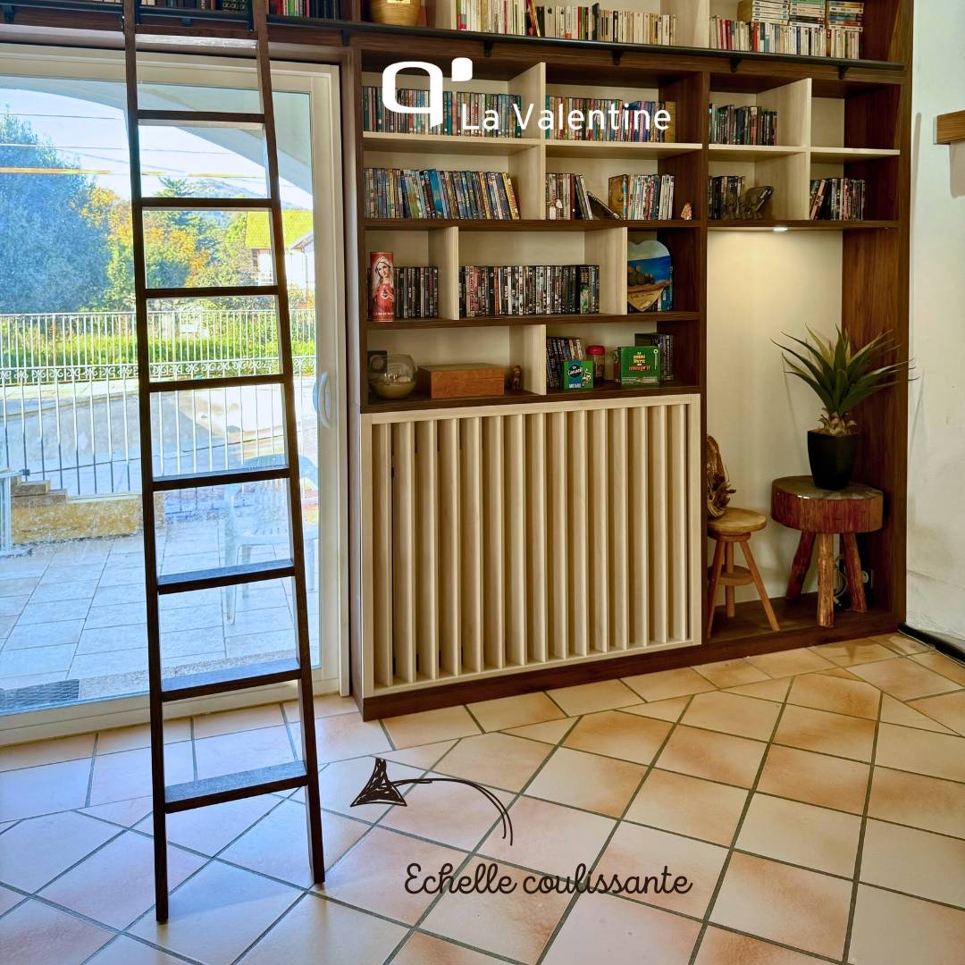 Et que dire de l’élément phare de cette bibliothèque : l’échelle coulissante ! Non seulement elle facilite l’accès aux étagères les plus hautes, mais elle ajoute également une touche intemporelle et sophistiquée. Avec son charme unique, elle transforme votre bibliothèque en une véritable pièce maîtresse de votre intérieur.
