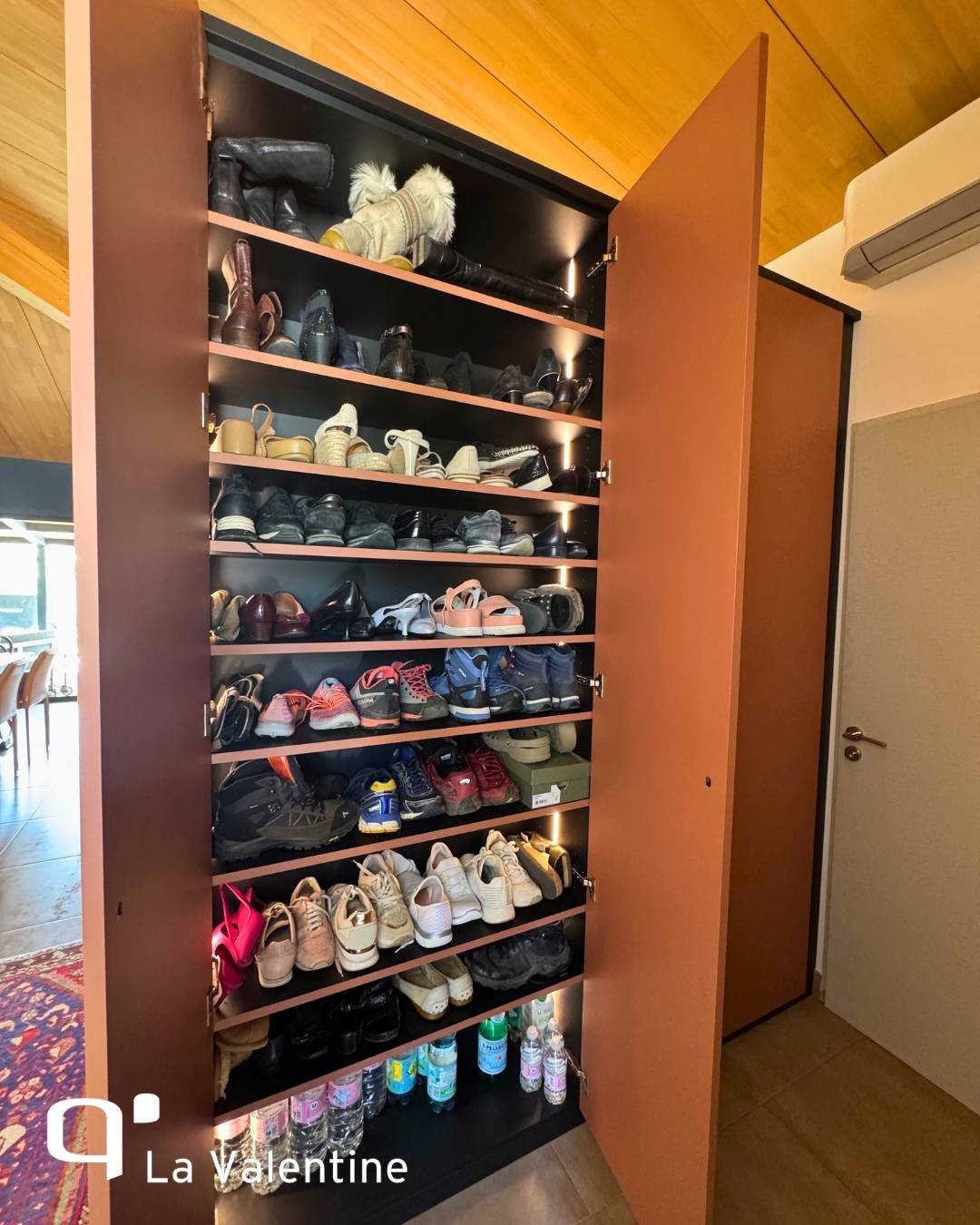 On dit souvent qu’on n’a jamais assez de paires de chaussures… et pourtant, ce meuble prouve qu’on peut en avoir beaucoup tout en restant parfaitement organisé. Pensé sur mesure, il allie design discret et contemporain à une fonctionnalité maximale. Derrière ses façades élégantes se cache un espace ingénieux où sneakers, escarpins, bottes et autres indispensables trouvent enfin leur place. Chaque étagère et compartiment a été étudié pour que tout soit facilement accessible, tout en gardant une esthétique épurée qui s’intègre harmonieusement dans la pièce.