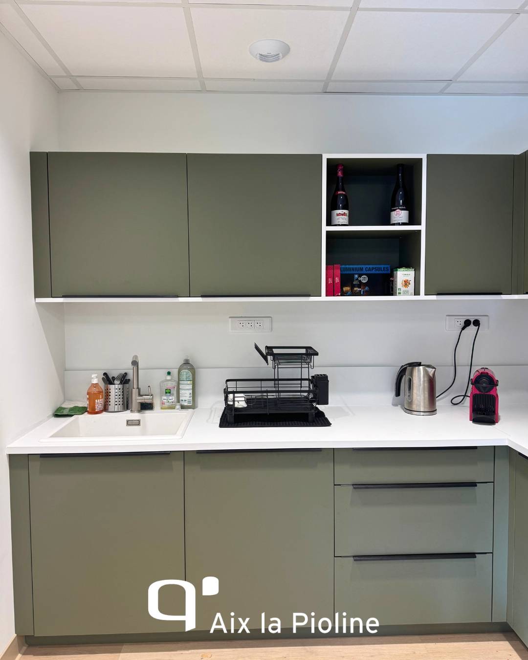 Cette cuisine a été pensée pour conjuguer fonctionnalité et élégance, créant un espace idéal pour une pause-café conviviale ou un déjeuner rapide. Chaque détail a été optimisé afin d'offrir un environnement agréable et pratique au quotidien à Aix En Provence.
