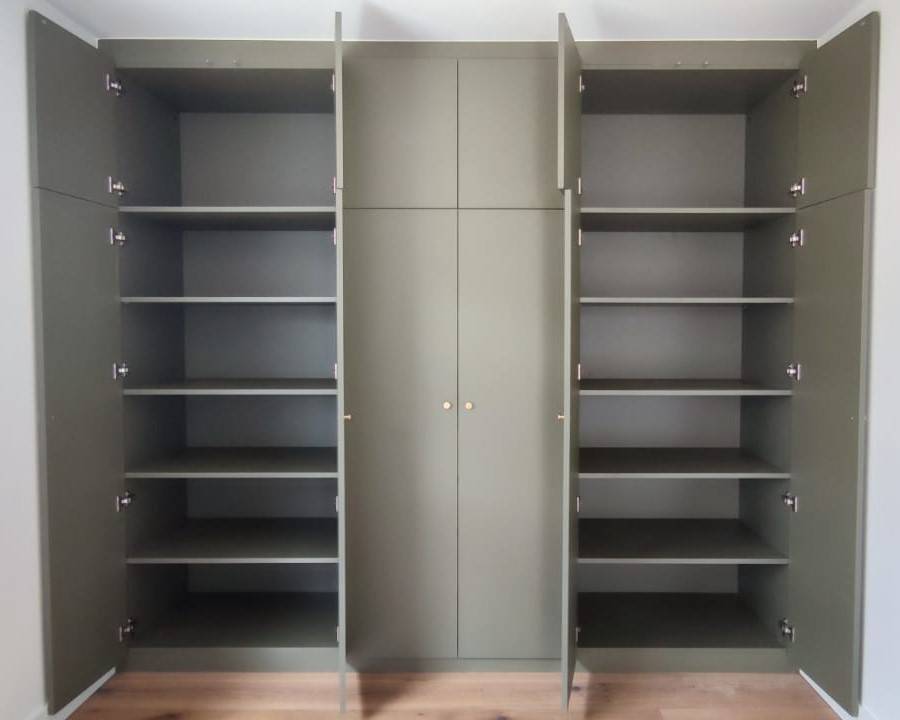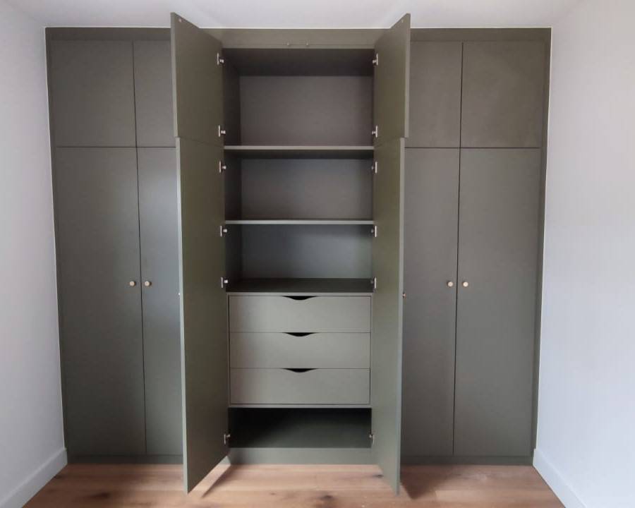 Le dressing sur-mesure permet également de définir l'agencement interne : étagères, tiroirs, tringles, compartiments pour chaussures ou accessoires, offrant ainsi une solution pratique et efficace pour chaque type de vêtement.