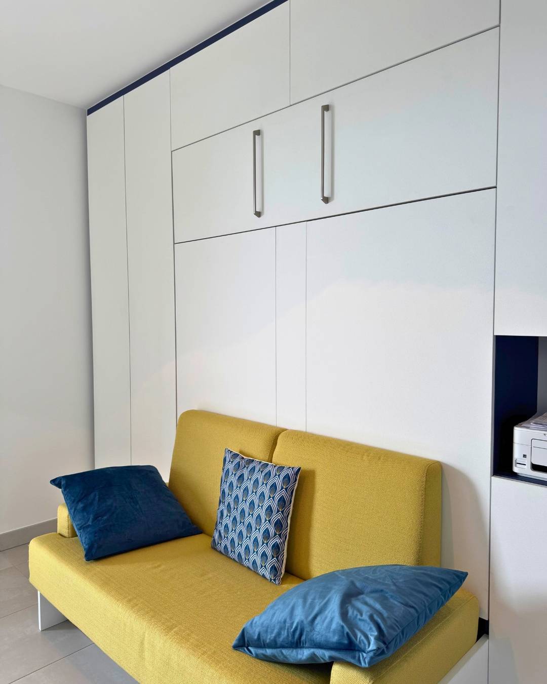 Un lit escamotable, astucieusement intégré, qui disparaît en un geste pour libérer de la place en journée