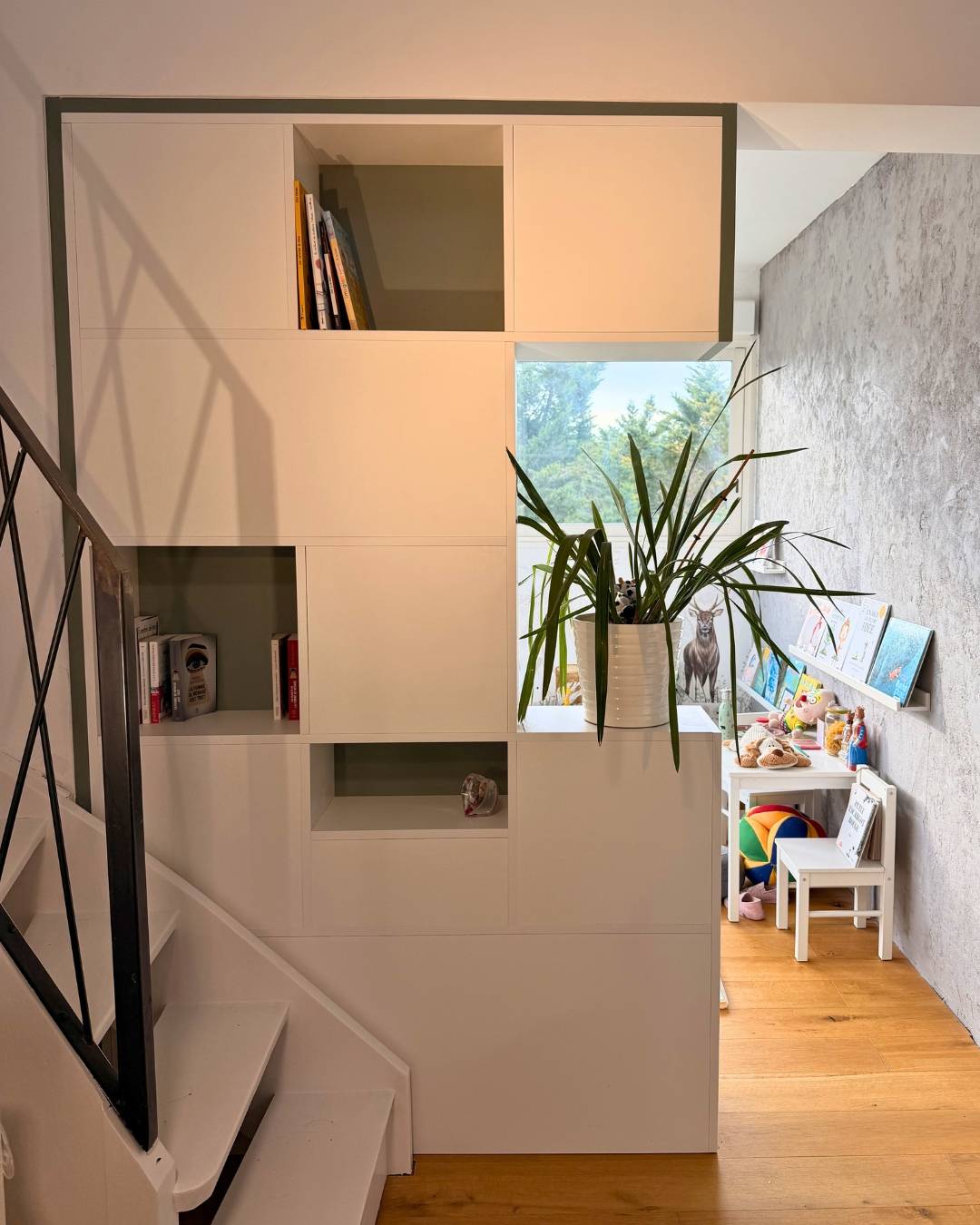 Le sur-mesure permet ici d’exploiter pleinement chaque centimètre, en s’adaptant aux besoins de toute la famille. Un équilibre parfait entre esthétique et fonctionnalité, pensé pour durer.