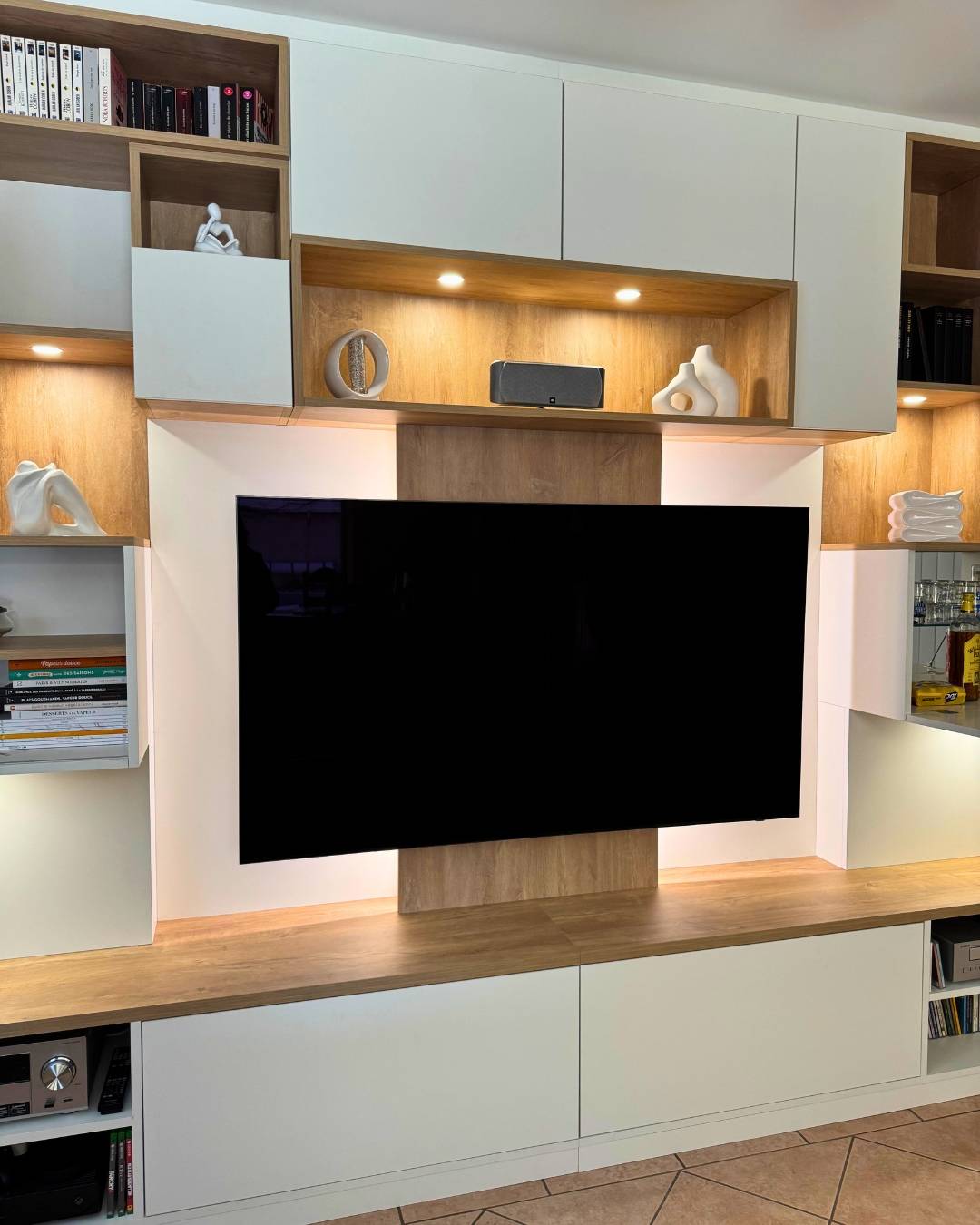 Élégance et fonctionnalité réunies dans un meuble TV sur-mesure.