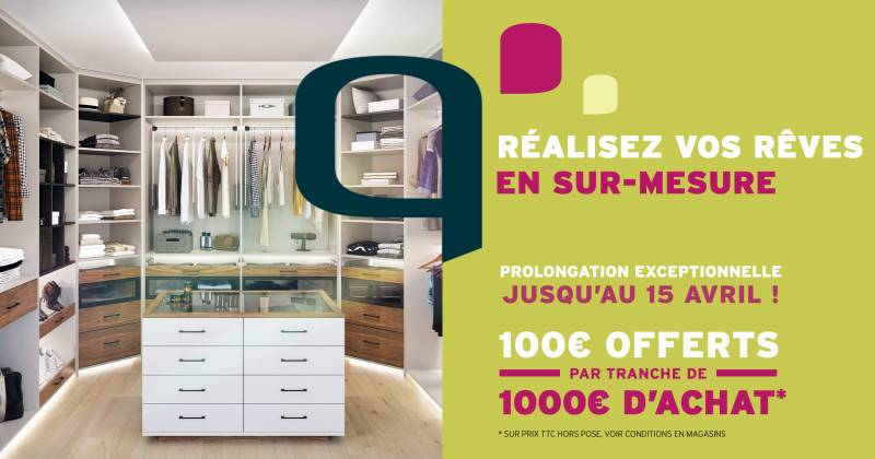 A partir de lundi 27 mars et jusqu'au 5 avril 2023, 100 € offerts pour 1000 € d’achat* !