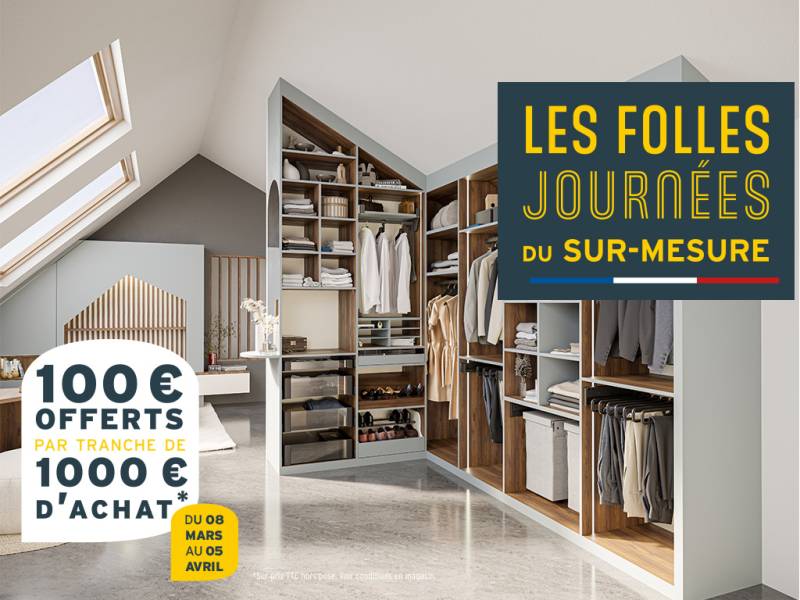 Du 8 mars au 5 avril, ne manquez pas notre grand rendez-vous annuel ! C’est le moment idéal pour donner vie à vos projets d’aménagement intérieur grâce à des conditions exceptionnelles sur toutes nos solutions sur mesure.