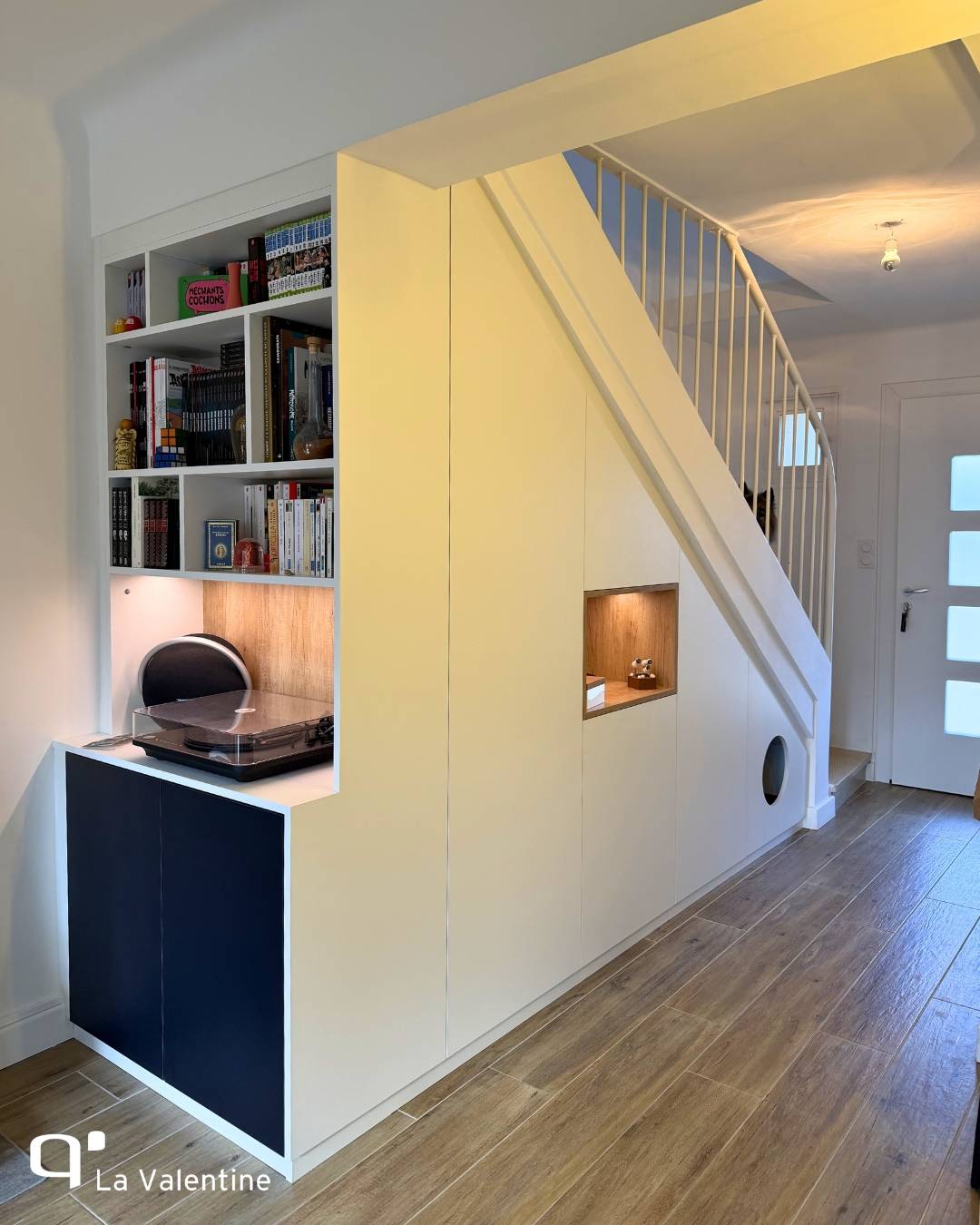 Voici un aménagement sous-escalier 100% sur-mesure qui transforme un espace souvent oublié en véritable atout déco et fonctionnel.