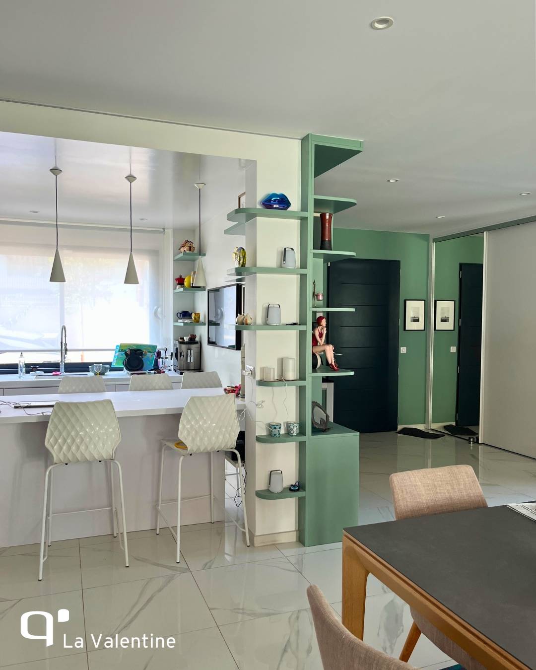 Un subtil éclairage intégré vient souligner les lignes de la composition, apportant du relief, de la chaleur et une ambiance douce en soirée. Cet aménagement illustre parfaitement la philosophie de Quadro La Valentine : créer des espaces uniques, fonctionnels et esthétiques, conçus pour s’intégrer naturellement à votre intérieur tout en reflétant votre personnalité et vos besoins du quotidien.